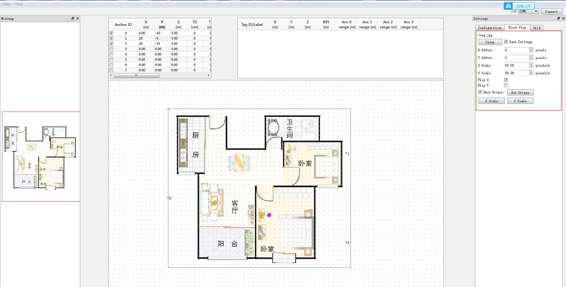 BP-hero 提供的上位机是在Decawav 基础之上微改的,官方上位机功能还是比较强大的本帖说明如何导入室内平面图 在右侧 的“Floor Plan” 中Open 一个设计图纸,调节X Y Scale在View中 选择mini map 更多内容练习 ...