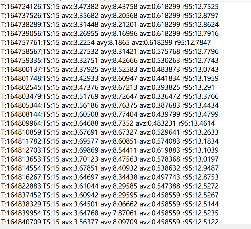 我们用avx,avy,avz来画轨迹图,log文件内容如图1所示但我们实验是沿着一个直角三角形走的,根据log文件的avx,avy,avz画出来的如图2所示 画出来的轨迹与实验真实轨迹不一致。 请问这是为什么?是通信不稳定的原因吗 ...