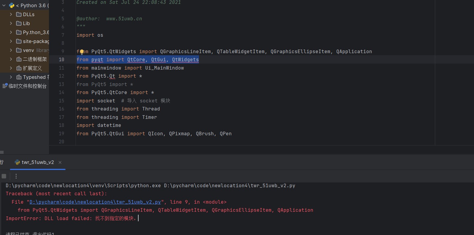多基站定位出现如下错误,求问有什么解决方法吗?python3.6.6,pyqt5,numpy 报错 from pyqt import QtCore, QtGui, QtWidgets ImportError